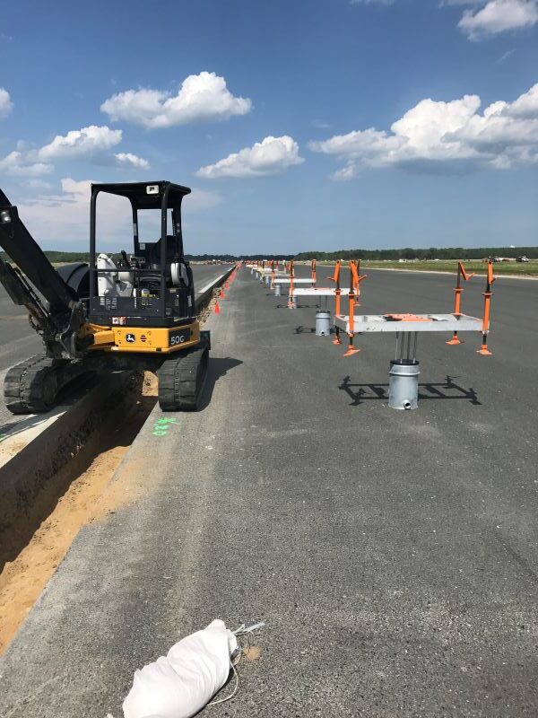 Atlantic Electric removed outdated airfield electrical systems and installed new LED runway and taxiway lighting, complete grounding and counterpoise networks, and runway status and wave-off systems. Additional work encompassed signage with concrete foundations, threshold light bars, and extensive concrete-encased ductbanks with manholes and handholes. Vault enhancements included CCR switchgear regulators, new generators with pads, and ALCMS integration, supported by new 15 kV gear, cabling, fiber optics, and full testing and commissioning.